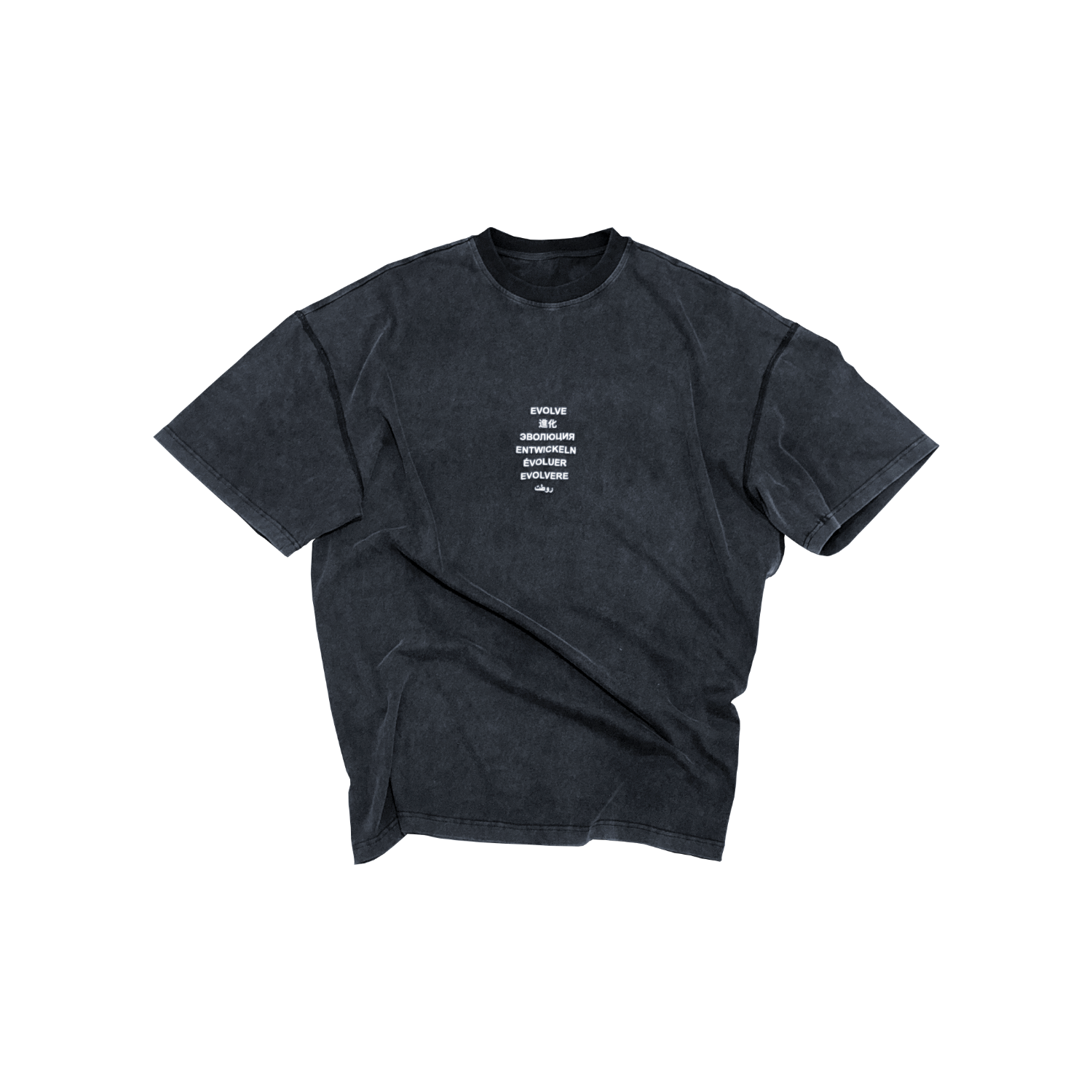 Front Graphic Print – “EVOLVE” motif printed in multiple languages, symbolizing growth and transformation.